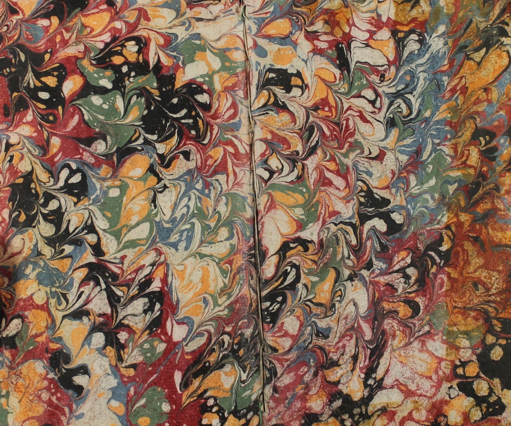 La carta presenta un motivo a bouquet. La decorazione è movimentata e presenta uan variegata gamma di colori: rosso, azzurro, nero. bianco, giallo, verde.