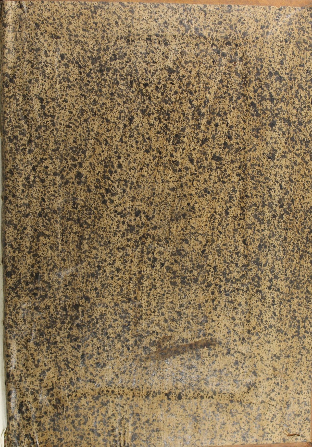 Applicati ai risguardi vi sono dei fogli di carta a colla sbruffata. Il motivo, che presenta schizzi minuti, è stato ottenuto spruzzando il colore marrone con una spazzola sfregata più colte su una griglia metallica.