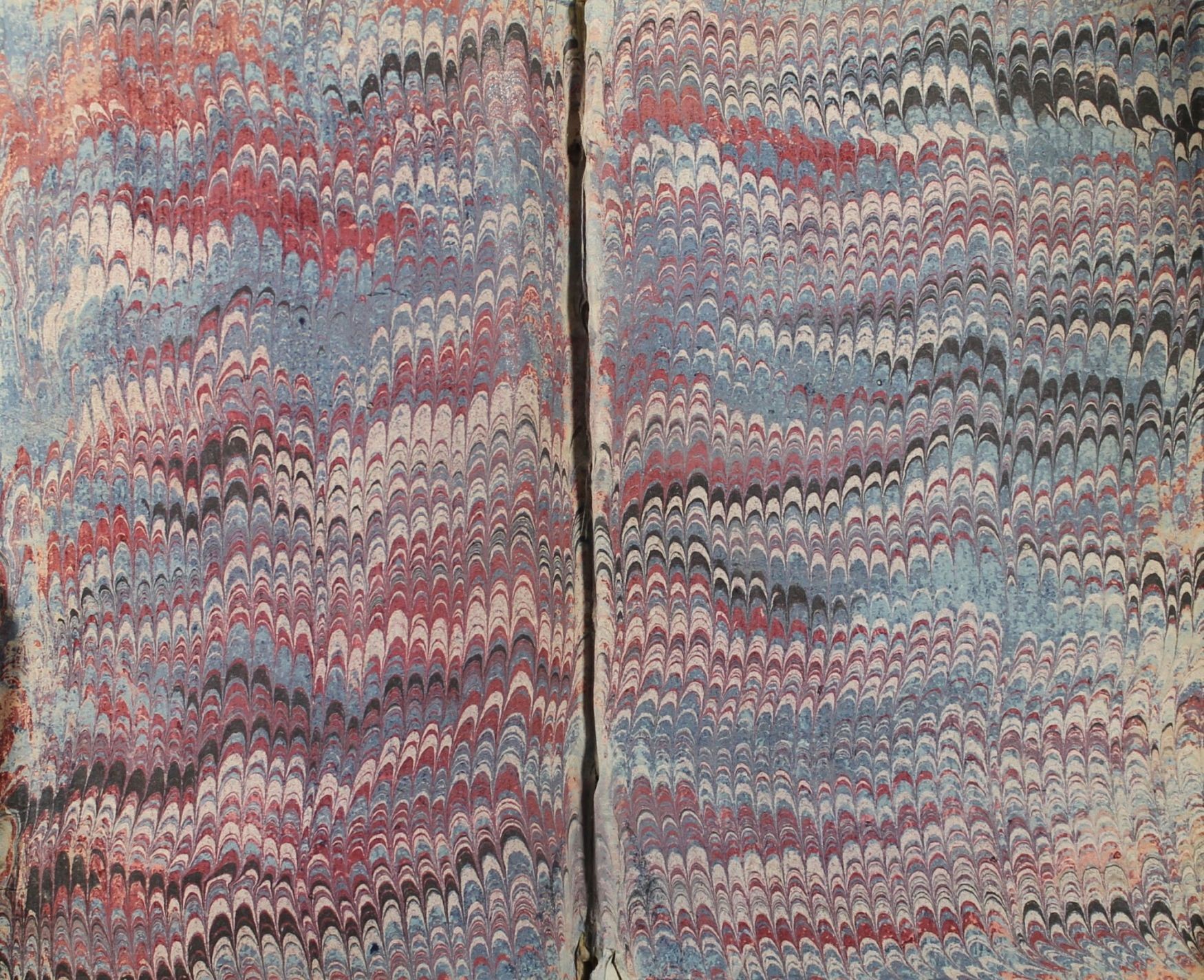 La carta presenta un motivo petit peigné. Tale motivo è caratterizzato da pettinato molto piccolo realizzato con un pettine a denti fitti. Le tinte sono scure, i colori utilizzati sono il rosso, il nero e il bianco e l’azzurro.