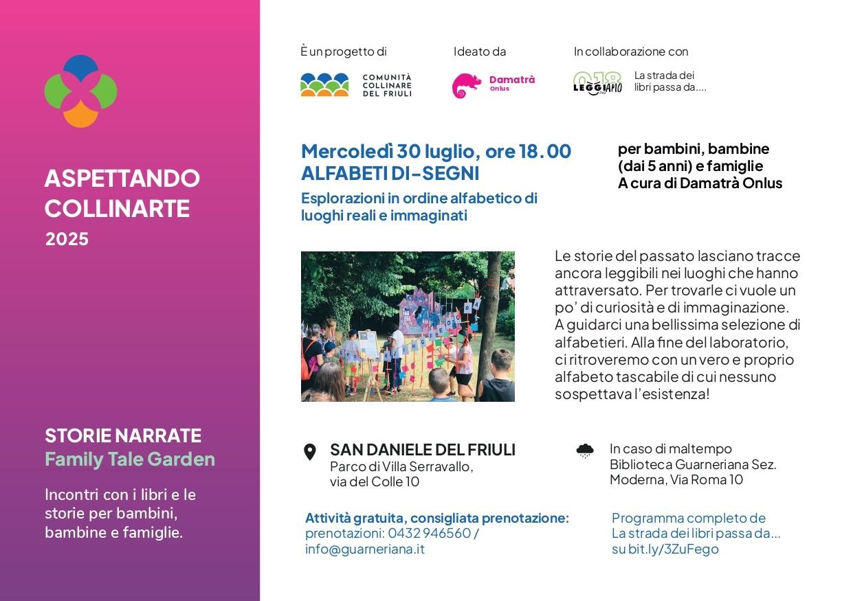 Appuntamento a San Daniele, mercoledì 30 luglio alle ore 18.00, nel bellissimo parco di Villa Serravallo con un laboratorio a cura di Damatrà onlus: