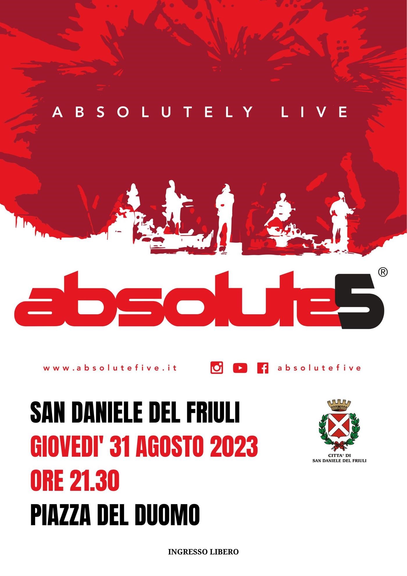 Giovedì 31 agosto alle ore 21.30 in Piazza del Duomo a San Daniele, arrivano gli ABSOLUTE5!!