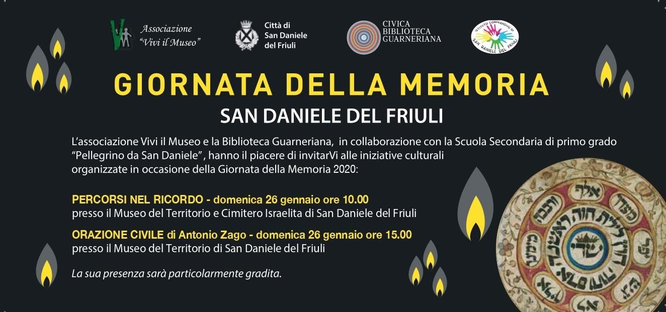 L'associazione Vivi il Museo e la Biblioteca Guarneriana, in collaborazione con la Scuola secondaria di primo grado "Pellegrino da San Daniele", vi invitano alle iniziative culturali organizzate in occasione della Giornata della Memoria: