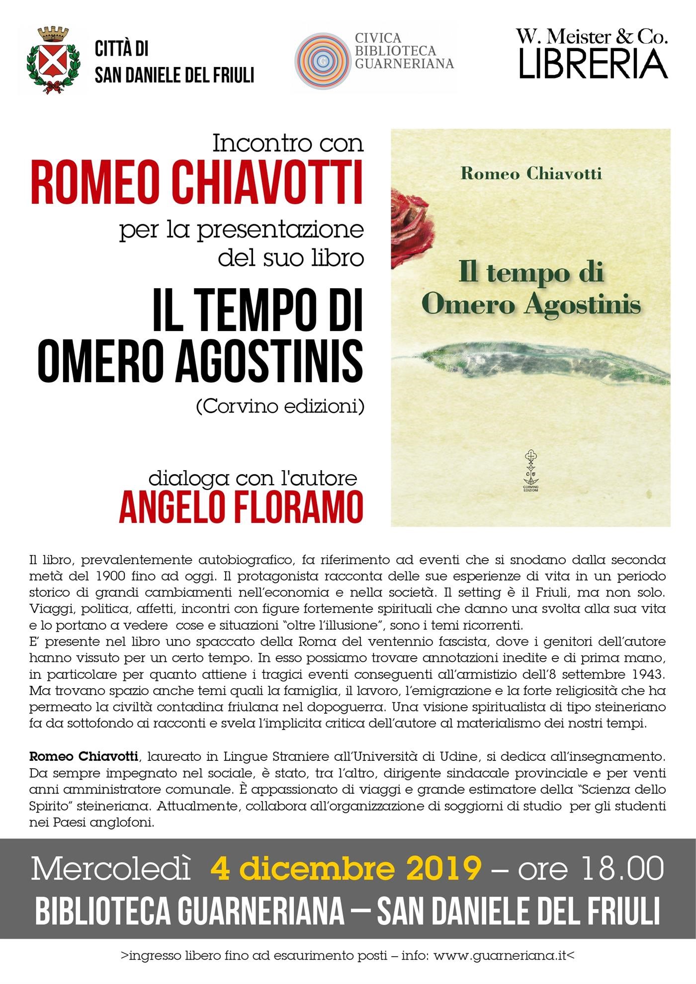 Romeo Chiavotti, con Angelo Floramo, presenta in Guarneriana il suo nuovo romanzo: "Il tempo di Omero Agostinis" (Corvino edizioni).