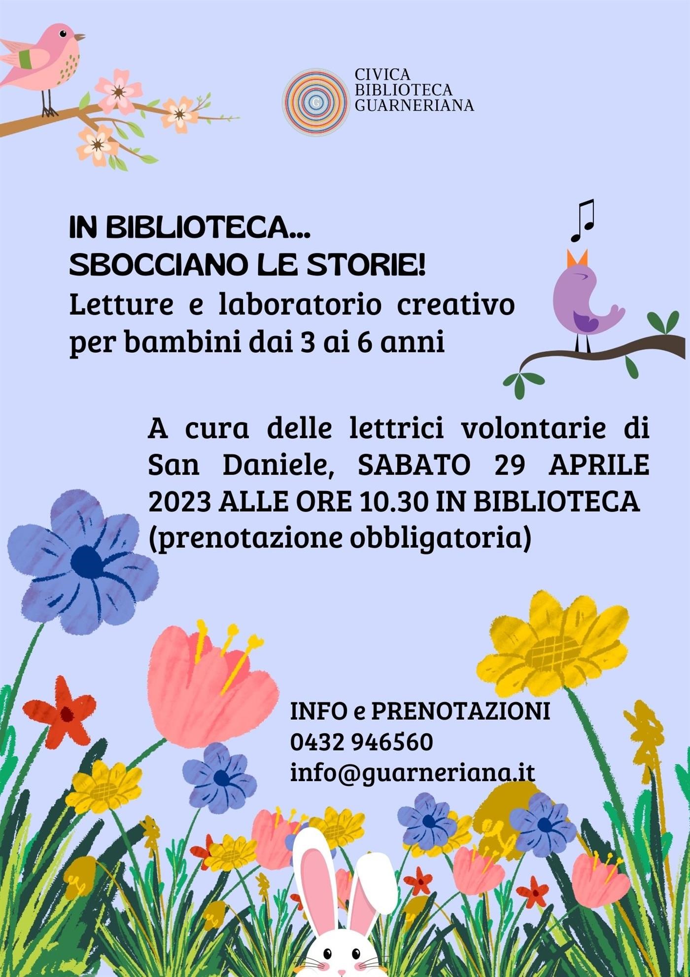 Sabato 29 aprile alle ore 10.30, in biblioteca Guarneriana - sezione moderna, sbocceranno le storie per bambini dai 3 ai 6 anni a cura delle lettrici volontarie e, a seguire, piccolo laboratorio creativo "floreale".