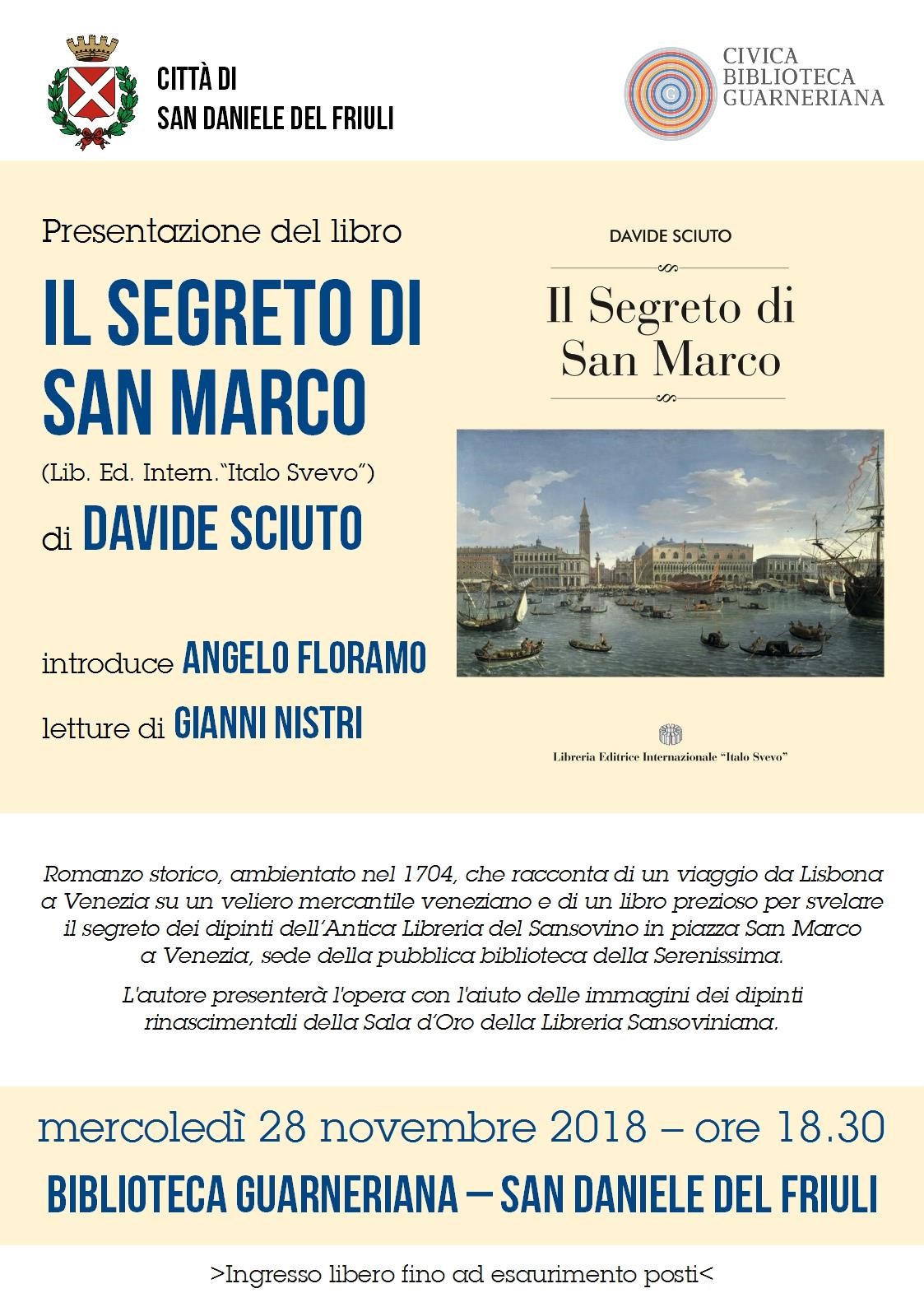 Incontro con Davide Sciuto per la presentazione del suo romanzo "Il segreto di San Marco" (Libreria Editrice Internazionale "Italo Svevo", 2018): romanzo storico, ambientato nel 1704, che racconta di un viaggio da Lisbona