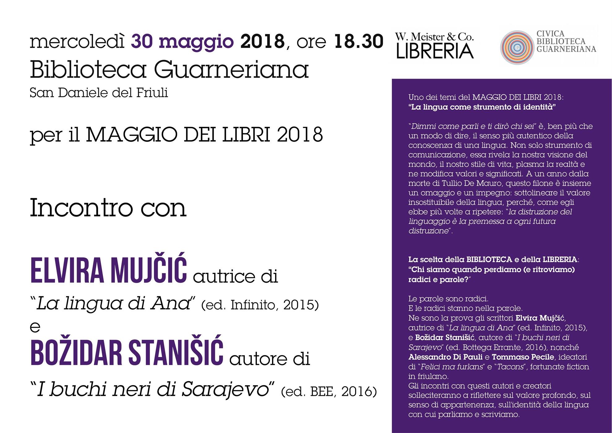 Ne sono la prova gli scrittori Elvira Mujčić, autrice di "La lingua di Ana" (ed. Infinito, 2015), e Božidar Stanišić, autore di "I buchi neri di Sarajevo" (ed. Bottega Errante, 2016), nonché Alessandro di Pauli e Tommaso Pecile, ideatori di "Felici ma furlans" e "Tacons", fortunate fiction in friulano. Gli incontri con questi autori e creatori solleciteranno a riflettere sul valore profondo, sul senso di appartenenza, sull'identità della lingua con cui parliamo e scriviamo.