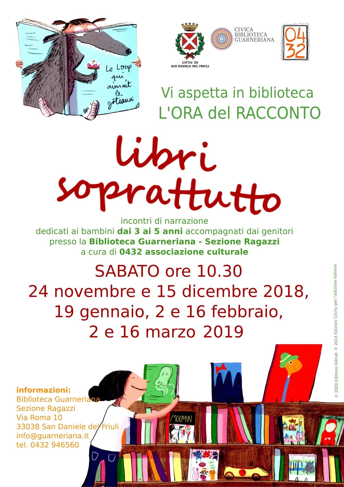 Torna in Guarneriana "LIBRI SOPRATTUTTO", l'ORA del RACCONTO riservata ai bambini dai 3 ai 5 anni d'età, accompagnati dai genitori: terzo appuntamento con un'ora intera di narrazioni per rendere speciale il sabato mattina delle famiglie!