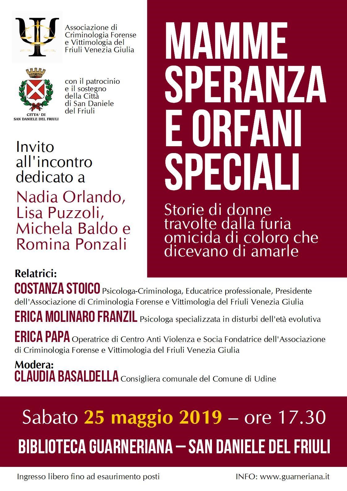 promosso dall'Associazione di Criminologia Forense e Vittimologia del Friuli Venezia Giulia con la collaborazione ed il sostegno della Città di San Daniele.