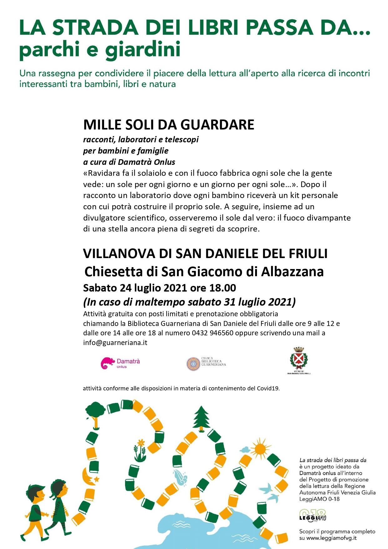 Sabato 24 luglio 2021 la strada dei libri passa da Villanova, presso la Chiesetta di San Giacomo di Albazzana con l'attività Mille soli da guardare, un pomeriggio di racconto seguito da un laboratorio dove ogni bambino riceverà un kit personale con cui potrà costruire il proprio sole.