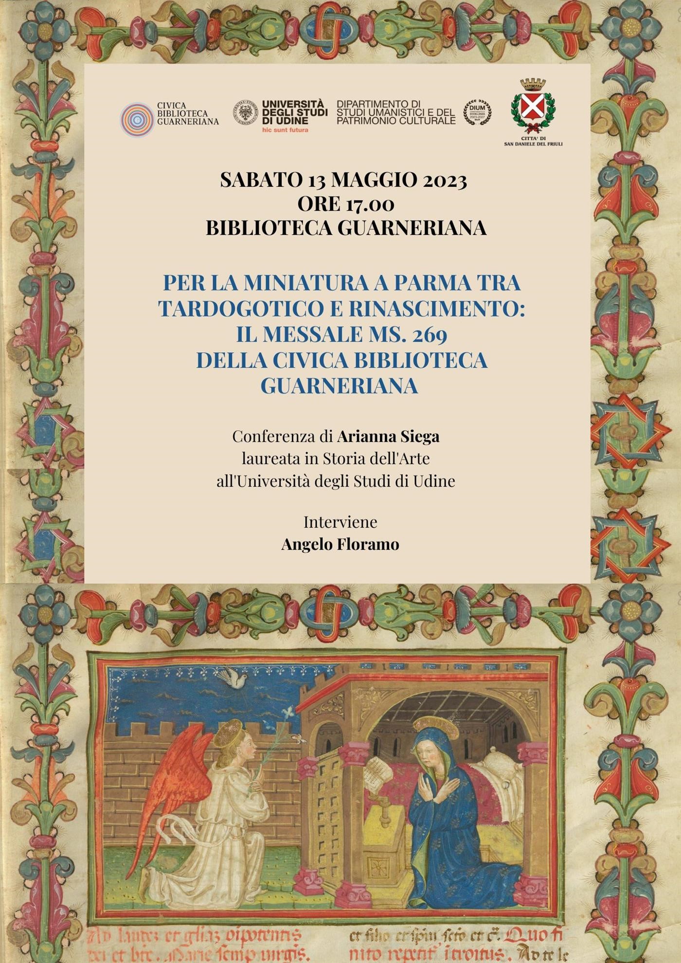 Il ms. 269, conservato presso la biblioteca Guarneriana, è un Messale realizzato a Parma probabilmente nella seconda metà del XV secolo.