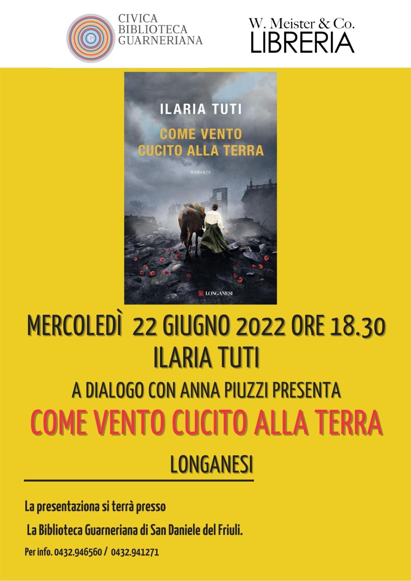 Mercoledì 22 giugno alle ore 18.30 in biblioteca Guarneriana, Ilaria Tuti presenta il suo ultimo libro Come vento cucito alla terra (Longanesi).