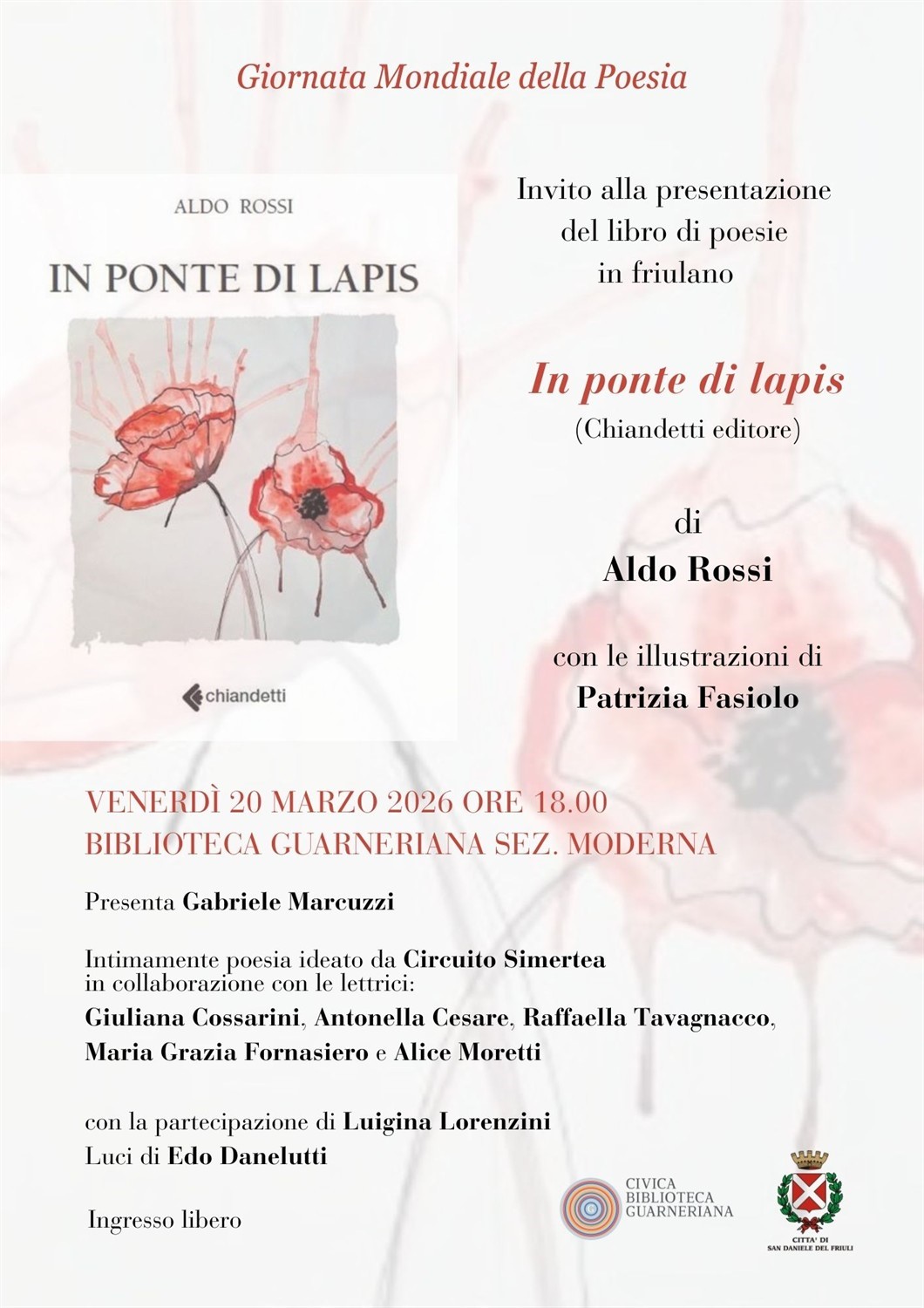 In occasione della Giornata Mondiale della Poesia, vi invitiamo venerdì 20 marzo alle ore 18.00 in Biblioteca Guarneriana – sezione moderna, per un incontro dedicato alla poesia