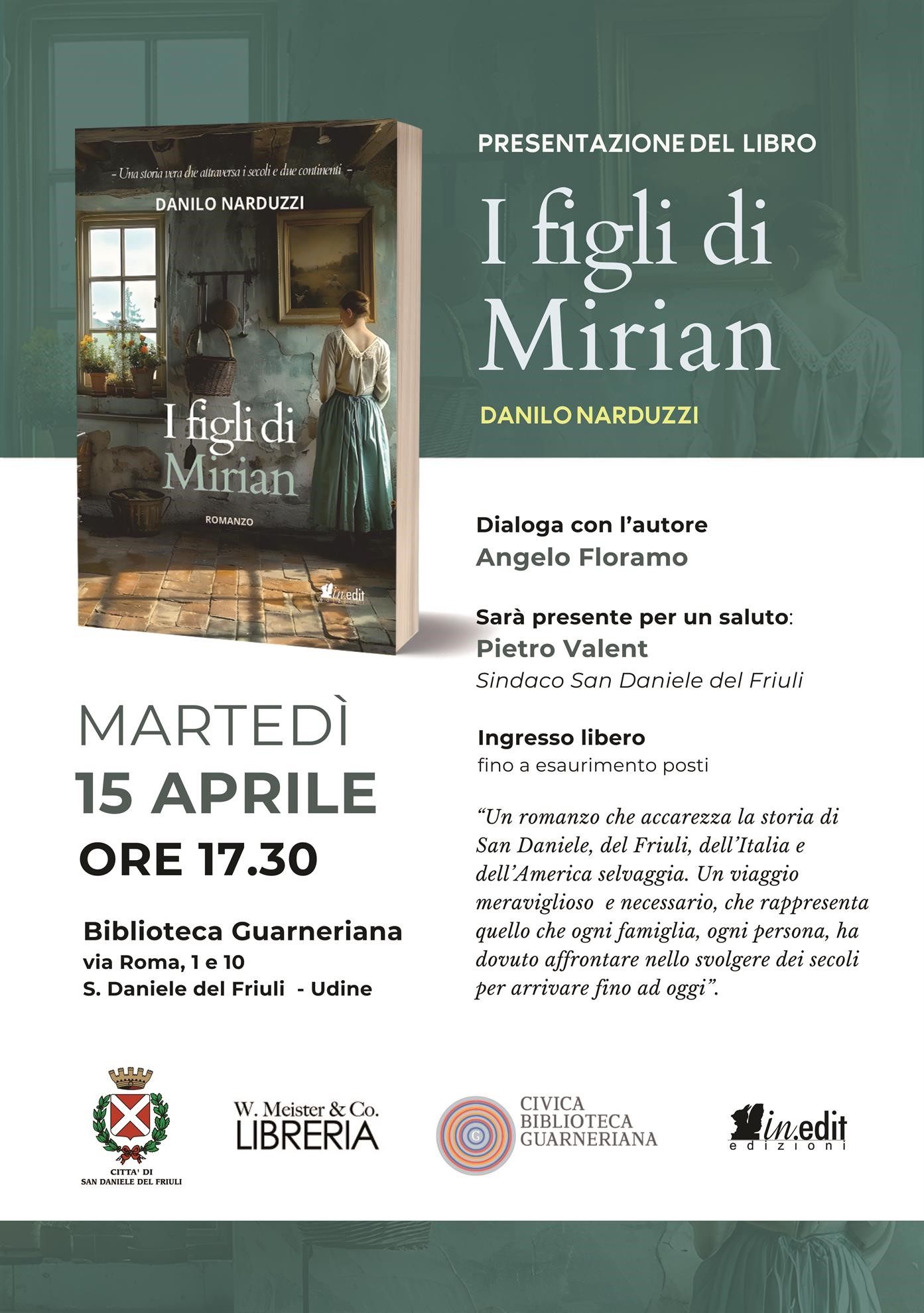 Martedì 15 aprile 2025 alle ore 17.30 in Biblioteca Guarneriana, verrà presentato il libro I figli di Mirian (In.edit edizioni), di Danilo Narduzzi.