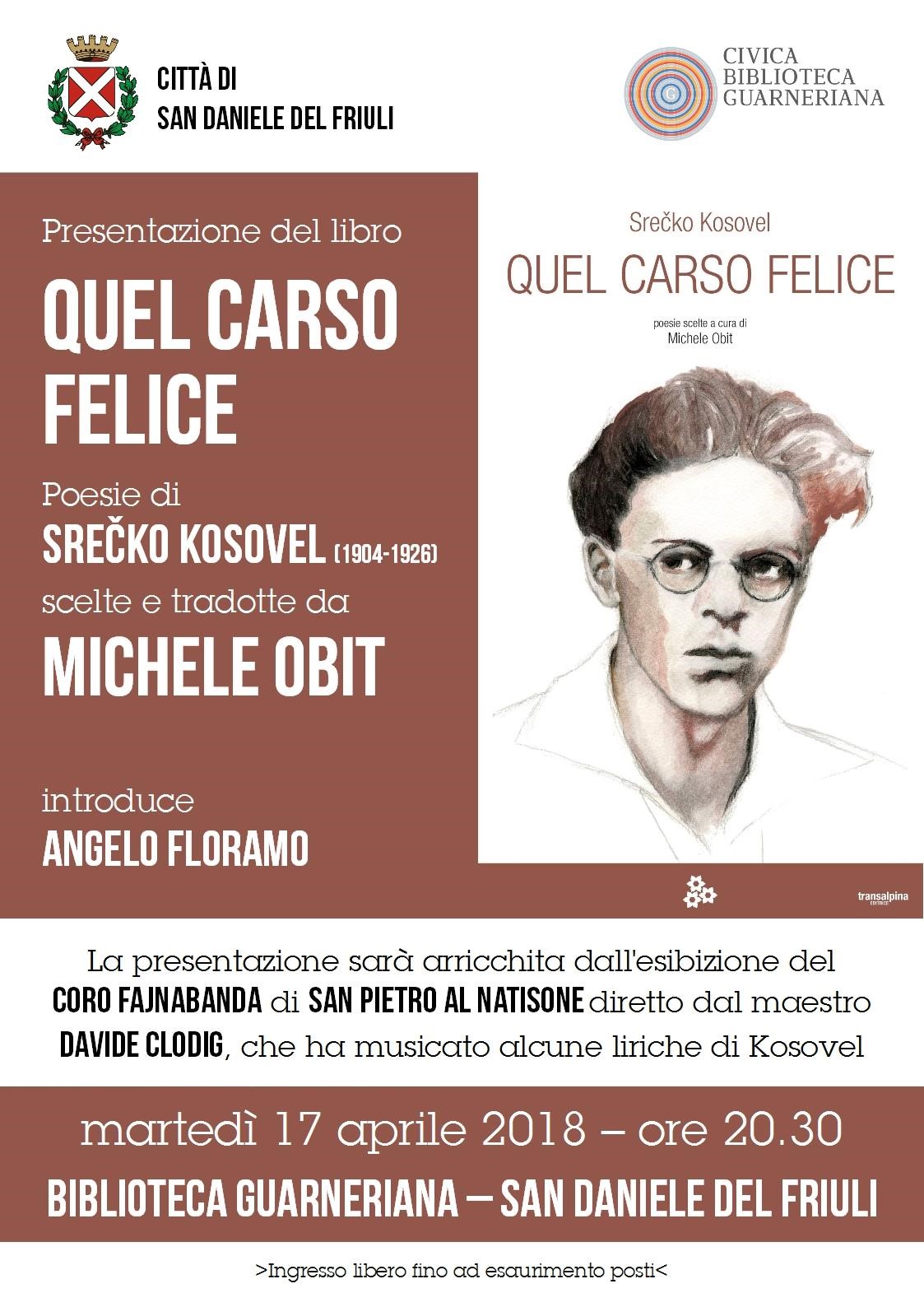 Presentazione del libro "Quel Carso felice" con poesie di Srečko Kosovel (1904-1926) scelte e tradotte da Michele Obit.