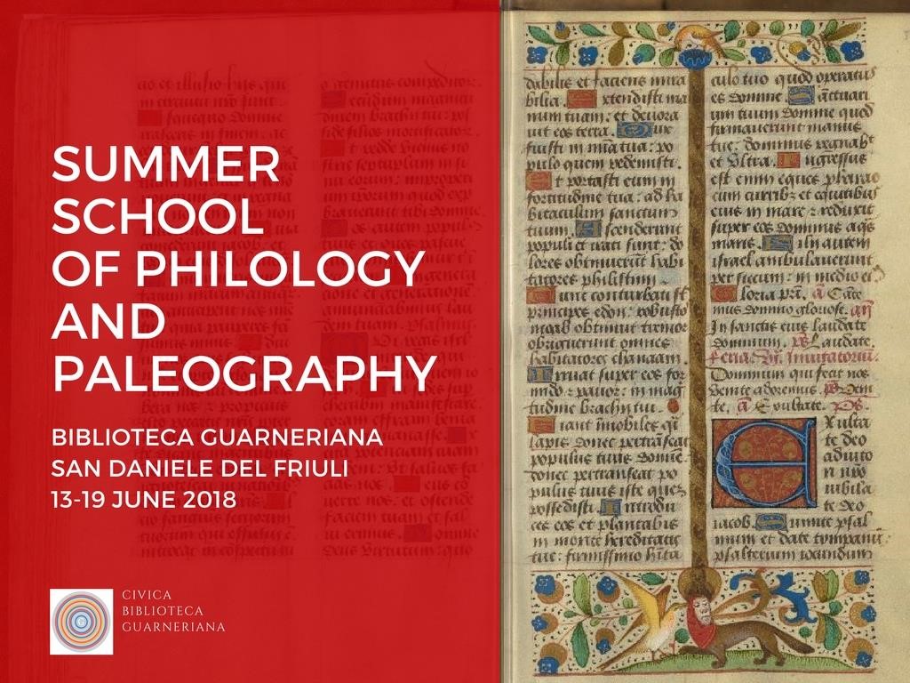 La terza edizione della Summer School di Filologia e Paolegrafia organizzata dalla Guarneriana con la prestigiosa collaborazione della Ohio State University (U.S.A.), della University of Tokio (J) e delle Università degli Studi di Udine e di Trieste, apre ai curiosi con le proprie lezioni pubbliche, l'ultima delle quali sarà tenuta dalla dott.ssa Elisa Nervi, direttrice della Guarneriana, con un intervento su: Il Manoscritto Guarneriano 4, breviario di rito aquileiese; e dal prof. Angelo Floramo con una lezione su: Godescalco il Sassone in un Manoscritto Guarneriano: dal Friuli alla Croazia tra filologia ed eresia.
