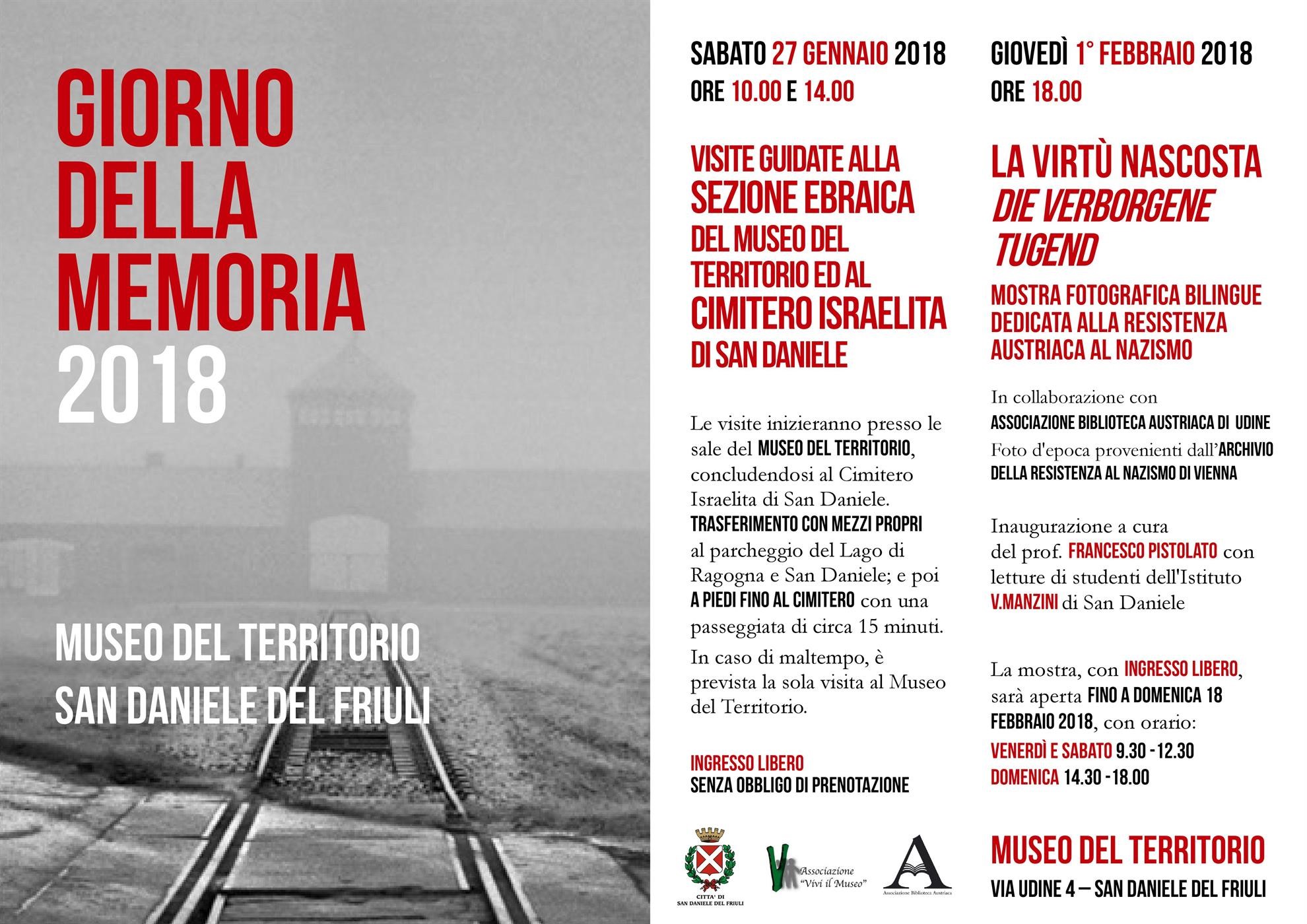 Sabato 27 gennaio, in occasione del Giorno della Memoria 2018, il Museo del Territorio propone due visite guidate gratuite alla propria Sezione Ebraica e a seguire al Cimitero Israelita di San Daniele.
